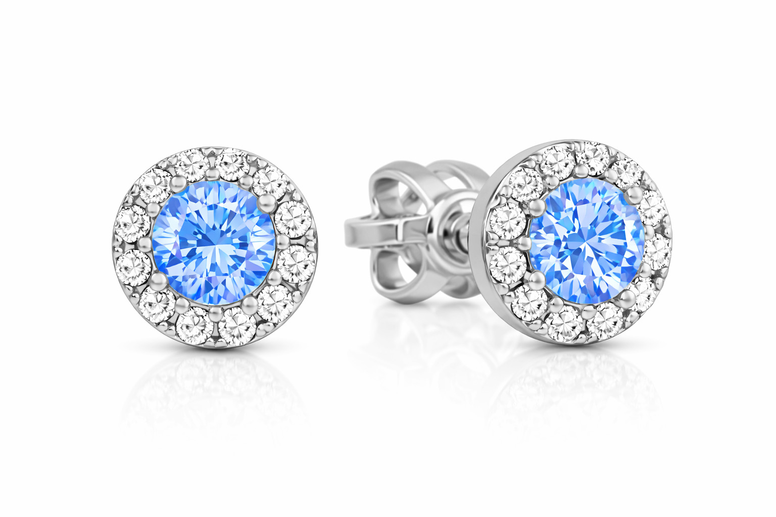 Šperky Soliter – zlaté kulaté náušnice se světle modrým krystalem. Exkluzivní design a kvalitní materiál.