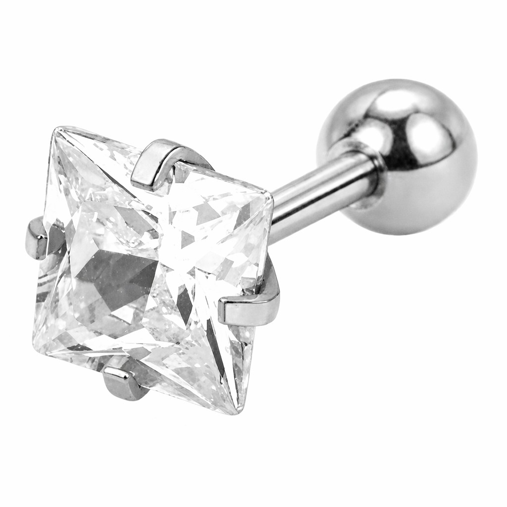 Ocelová piercingová náušnice s čirým krystalem Čtverec, dokonalý design pro stylové doplňky.